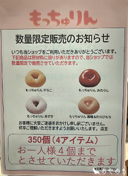この記事では全種類の『もっちゅりん』を食べた感想と、購入するために知っておきたいことを紹介します。